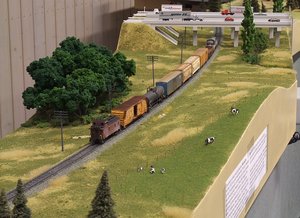 Zwei Streckenmodule wurden ebenfalls erstmals durchgestaltet eingesetzt. Das Modul The Culvert hat seinen Namen von dem kleinen Rohr, das den hangseitigen Bahndamm entwässert. Und auf Interstate wird er Konkurrenz des Schienenverkehrs viel Raum eingeräumt. Die beiden Brücken des Interstate Highways entstanden vollständig im Eigenbau bis hin zu den Leitplanken und dem Interstate-Schild.