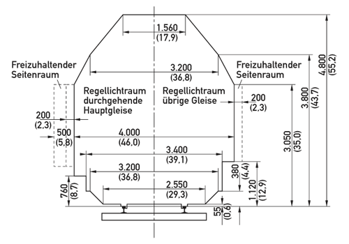 Außerdem gibt es hier eine aktuelle Zeichnung mit den wichtigsten Maßen für die Gleisumgebung wie Bahnsteige und Laderampen: Lichtraum und Gleisumgebung. Quelle: DB-Fachbuch, Zusammenstellung von Richtlinien für das Entwerfen von Bahnanlagen sowie Tabellen und Formeln, Eisenbahn-Fachverlag, Heidelberg/Mainz, 1982