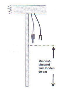 Alle Leitungen und Anlagen, die mit 230 V Netzstrom betrieben werden, müssen von den Modulen getrennt sichtbar (kontrollierbar) am Boden unter den Modulen verlegt werden!