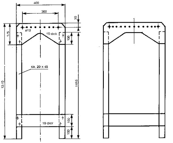 Werden Modulkästen von einer Breite größer als 500 mm gebaut, sind entsprechend zusätzliche Löcher zu bohren, bei schmaleren weniger.