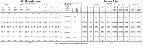 Auf der Mainline gab es pro Fahrplan und Richtung einen Express, vier Commuter, drei Through und zwei Local. Die Branchline wurde bei Bedarf von Lonepine aus bedient.