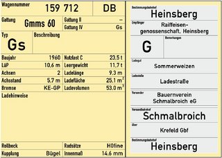 Damit Frachtzettel und Wagenkarte verbunden werden können, ist auf der Vorderseite der Karte eine Klarsichttasche aufgeklebt, die den Zettelhalter am Güterwagen ersetzt; Büroklammern an der Wagenkarte sind nicht mehr zeitgemäß.