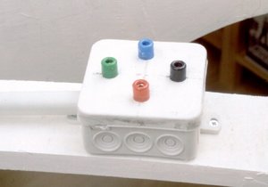 An der Unterseite des Trassenbretts werden etwa 10 Zentimeter vom Endprofil zwei Elektro-Kleingehäuse geschraubt. Von oben werden, genau neben den Schienenprofilen, Löcher für den elektrischen Anschluss der Schienen gebohrt. Die Löcher gehen bis in die Gehäuse. Nun lassen sich vier Aderleitungen von unten in Richtung Schienenprofil einfädeln. Diese werden an den letzten 2 mm um 90 Grad umgewinkelt und können dann ganz einfach mit den Unterseiten der Schienenprofile verlötet werden.
