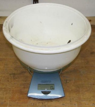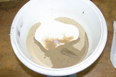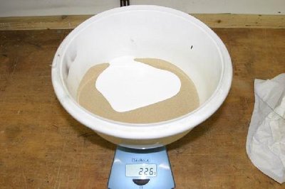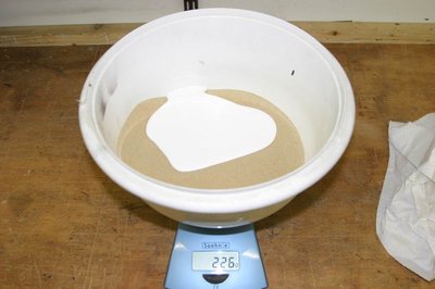 Als erstes kommt Quarzsand in die Schüssel. Das ?Rezept? sagt aus, es sollen ca. 1500 g verwendet werden.