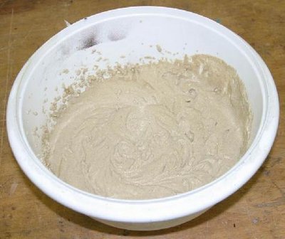 Wie schon eingangs beschrieben, erhält man bei der hier beschriebenen Methode eine Spachtelmasse, die sich für die Modulgestaltung sehr gut eignet. Wie zäh die Masse hinterher wird, kann natürlich noch individuell durch Beimischung von mehr Quarzsand oder mehr Tiefengrund beeinflusst werden. Beim hier beschriebenen Mischungsverhältnis ergibt sich eine gerade noch streichfähige Masse, ideal für den Grundüberzug. Will man damit größere Lücken füllen oder etwas modellieren, so sollte man etwas mehr Quarzsand hinzufügen.