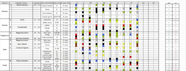 Perché non si debba improvvisare tutte le volte, ogni stazione ed ogni insediamento produttivo dispone di un piano binari (Fig. 5) sul quale è espressa la capacità di carico settimanale, suddivisa per ogni giorno, dei binari a diversa destinazione.