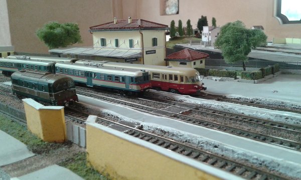 Abbiamo organizzato un layout che aveva come suo fulcro la stazione di Rosenheim nella quale i treni internazionali cambiavano trazione.