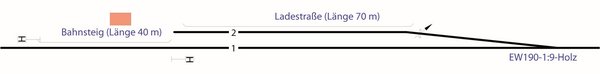 Heute gibt es noch einen Bahnsteig und das Ladegleis endet in einem "Naturprellbock".