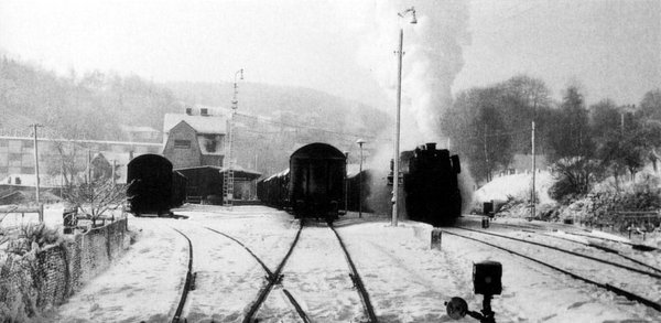 Nachfolgender Gleisplan und zwei Fotos mit freundlicher Genehmigung von Herrn Hans-Günther Morr aus seinem interessanten Buch "Mit Volldampf durch den Odenwald", Diesbach-Verlag: