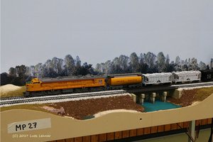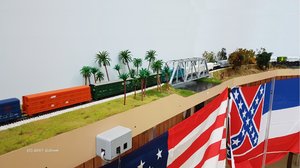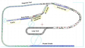 Unser Layout war mal wieder ganz nach unserem Geschmack! Rund 35m Strecke (entspricht ca. 3,0km oder ~ 1,85miles prototype) vom Yard (Mussel Shoels) bis zur ersten Betriebsstelle (Dixie Springs). Da konnten wir es mal echt krachen (äh .. rollen) lassen - Zugkreuzungen von "Long Trains" inclusive ...