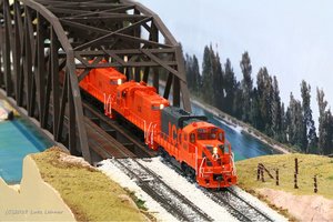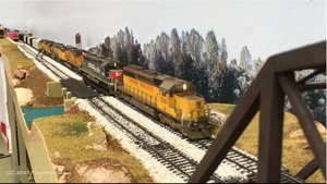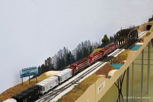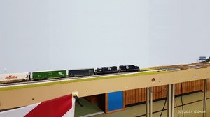 Gegen Ende des Treffens wurden wir dann noch ein bißchen moderner. SD60 #5969 zieht einen Mixed Freight Train von Loopyard nach Mussel Shoels - in RP25 (nix Pizzascheider Radkränze!) - alleine - 12m lang - rund 10kg schwer - ohne Haftreifen und ohne Mittelschleifer - feel the steel! Fast so wie im Original! Railroading is fun!