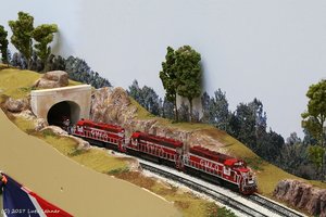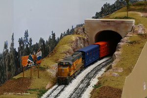 Zug 916 donnert durch den Magnolia Trail Tunnel über die Mainline. Auf der Siding wird gleich ein Gegenzug kreuzen.