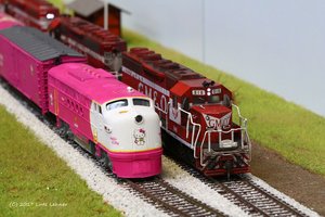 Unser Pussy Train hatte dieses Mal ein entspanntes Dasein. Hier wird er gerade an Pennie´s Bluff von Freighttrain 916 in Richtung Loopyard überholt.