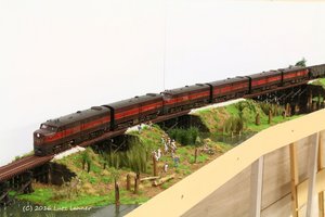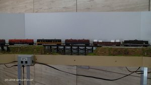 Nette Idee: Die Gruppen werden von einer Bahngesellschaft bedient die bei allen H0-USA Gruppen fährt. Leider nie konsequent durchgezogen und so sind noch versprengte Einzelkämpfer aus einer längst vergangenen Epoche auf den endlosen H0-USA Gleisen unterwegs und suchen Anschluß ....