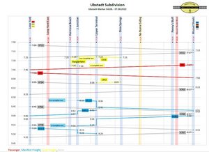 Ubstadt 2022 - wir fahren modern. Ja, manche würden auch sagen, sehr modern! Als Zeitperiode haben wir 2000 (oder ein bisschen davor) bis heute (2022) vereinbart. Alles was da so unterwegs hätte sein können, darf auf die Gleise. Die Planung des Layouts war dieses Jahr gar nicht so einfach. Durch die kurzfristigen Ausfälle von T3homas und T4homas, hatte Hardy das Layout noch 2 mal umplanen müssen. Dennoch haben wir es auf 75 m Mainline und 17 m Branchline gebracht.