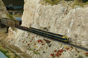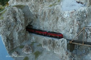 Beeindruckend - alleine schon durch seine schiere Größe - war der Canyon von White Horse. Hier hat es so manchen Fotostop beim Freien Fahren gegeben. Während der Sessions leider auch manchmal - das waren halt kleinere Behinderungen im Betrieb. Im Bild eine Überführungsfahrt einer Doppeltraktion der Lonepine Junction in das Industriegebiet. Ja, die GP30 ist nicht zu modern! Sie wurde überhaupt nur bis November 1963 produziert!