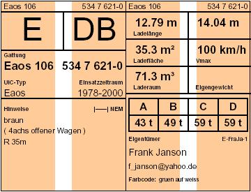 - Wagengattung inkl.Nebengattungszeichen