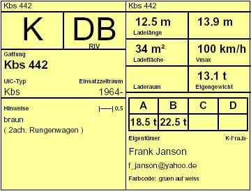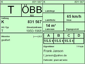 Für Güterwagen wurden die folgenden Wagenkarten vereinbart.