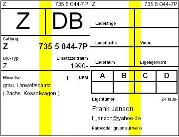 - Wagen-Nummer (entgegen den Mustern ohne Prüfziffer)