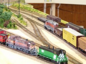Eine lange Mainline zwischen den Yards, komplett durchgestaltet, sowie viel Arbeit für zwei Switcher im Industriegebiet.