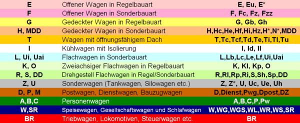 Die Gattungsbuchstaben sind von http://home.wtal.de/gueterwagen/gzde.htm entnommen mit Erweiterungen.