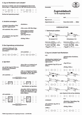 - Der Vordruck des Zugmeldebuchs ist universell. Mit wenigen Einträgen ist er einsatzfertig. Damit ist man unabhängig von den Unterlagen des Fahrplanmachers.