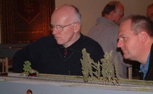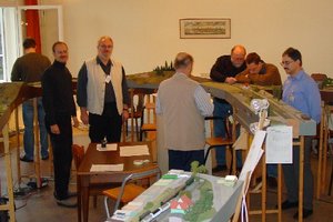 Lobenswert war auch der unermüdliche Einsatz des "Raummeisters" Dieter Kahlfeldt, welcher durch Getränke- und Kuchenversorgung für eine gute und entspannte Stimmung, sorgte, zudem trug die direkte Lage der für Hauptmahlzeiten aufgesuchten Gaststätte Bienroder Krug ihr übriges dazu bei. Ebenfalls als Leckerbissen zu erwähnen waren Dieters Präsentationen seiner detail-betonten Kleinserienmodelle wie die „Behältertragwagen“, Harzer Kalk-, Persilwagen oder auch das neue gänzlich gefertigte N-ALU-Modul („Aludul“ aus Dieter´s Wunderstudio), was großen Anklang fand.