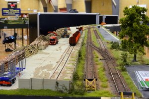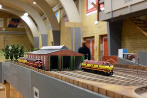 Endelich wurde es Donnerstag. Ich hatte verabredet gemeinsahm mit einen anderen Teilnehmer mehere Anhänger-gefüllte Module zu der Halle in Kolding zu Transportieren. Damit verbrauchten wir einige Stunden am Morgen. Es war spannend jedes mal als wir an die Halle kamen, zu sehen wie mehr und mehr Teilnehmer und Module auftauchten. Und langsam, aber sicher, wurden die Strecken gesammelt, die höhe wurde kontrolliert, nächstes Modul – wo steht das wohl? Ah da, ok, Modulbeine wurden Montiert und höhe kontrolliert... und weiter. Leider waren einige der Norwegische und Schwedische Module verspätet durch Stau nach einen Unfall auf der Autobahn. Aber letz ende waren die insgesamt 220 Meter Strecke und Bahnhöfe, die aus Deutschland, Schweden, Norwegen und Dänemark kamen, aufgestellt.