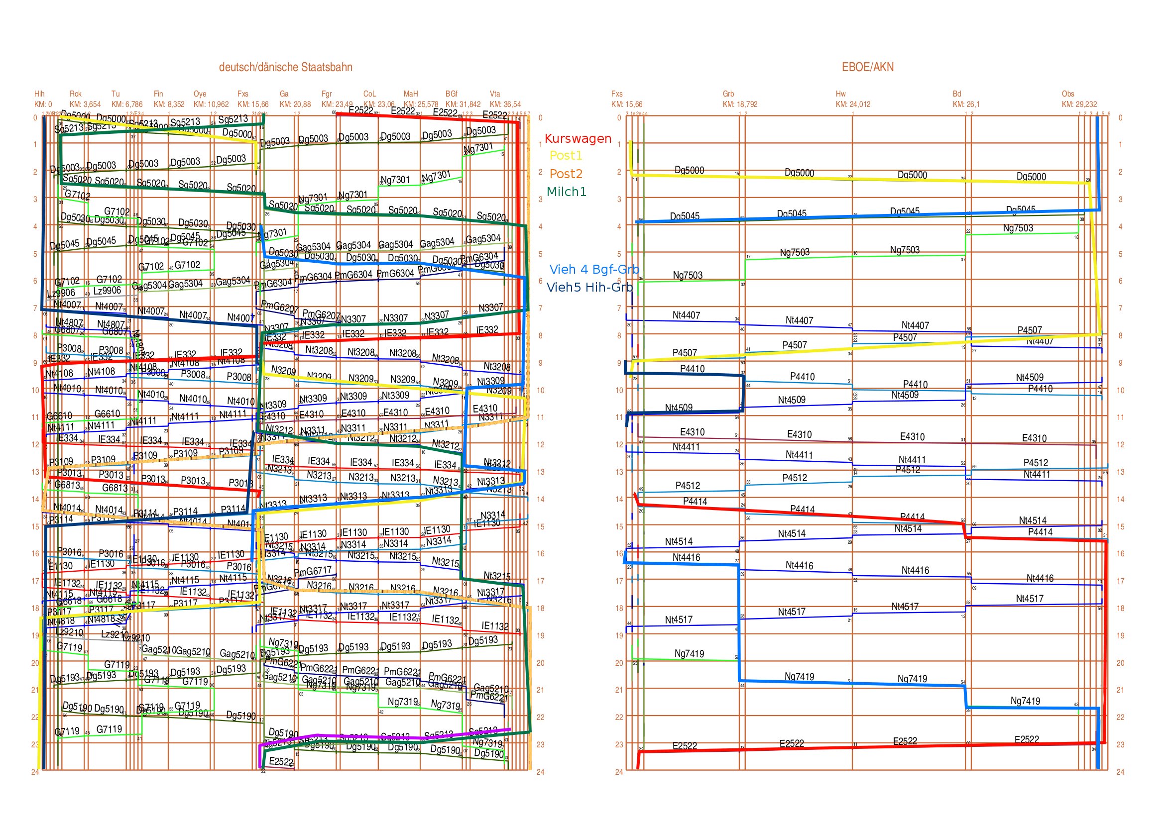 Das Arrangement wird aus 3 Ästen bestehen: DB Hauptbahn, dänische Hauptbahn und EBO-Nebenbahn.