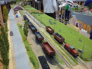 Der Übergabebahnhof Katterbach schloß zusammen mit der hübschen H0-Station Allagen relativ zentral an den Bahnhof Holnis an, was einen zeitlich parallelen Aufbau mit einem großen Teil des Regelspurarrangements ermöglichte.
