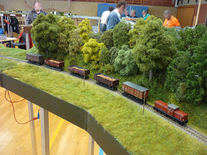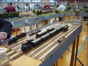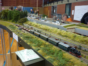 Dieses Jahr stand im Gegensatz zu den vergangenen Jahren auch wieder mehr Platz für die Entwicklung der Meterspur zur Verfügung, welche sich auf etwa 60 Meter Modullänge bei sieben Aktiven summierte. Thema war wie schon mehrmals in Bad Oeynhausen die Deutsche Bundesbahn in der Epoche III.