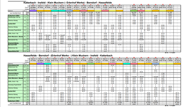Im Personenverkehr wurde Katterbach im Fahrplanverlauf durch insgesamt 6 Pt’s der H0-Regelspurbahn bedient. Der zweite Pt führte am frühen Morgen zwei Stückgutwagen mit, die tagsüber im Stückgutverteilerzentrum Katterbach ausgestellt wurden. Das mitgeführte Stückgut wurde dann in insgesamt vier Schmalspurgüterwagen umgeladen, die fahrplanmäßig an den vorgesehenen Entladestellen im H0m-Arrengement am Vormittag ausgestellt und am späten Nachmittag wieder nach den Fahrplanvorgaben eingestellt wurden. Mit dem vorletzten abendlichen Pt wurden die Stückgutwagen dann über Hochfeld (Nord)dem SBhf (Maschen) zurückgeführt. Als Besonderheit ist hier anzuführen, dass im ersten morgendliche Pt 1932 von Katterbach nach Hochfeld (Nord) zusätzlich ein offener Regelspur-GW eingestellt wurde, der mit einer Vielzahl voller Milchkannen beladen war. Die Milchkannen mit frischer Milch, die zuvor an den verschiedenen Bahnhöfen und Haltepunkten der Schmalspurstrecke durch einen ebenfalls frühmorgentlichen PmM (Personenzug mit Milchbeförderung) fahrplanmäßig eingesammelt und im H0m-Endbahnhof Katterbach dann auf den offenen Regelspurwagen umgeladen wurden, um dann über das Regelspurarrangement zur Molkerei befördert zu werden. Der vorletzte Pt 1941 brachte dann aus Hochfeld (Nord) kommend die leeren Milchkannen wieder in einem offenen GW mit. Diese wurden dann nach dem Umladen in einen offenen Schmalspurgüterwagen wieder mit dem abendlichen PmM, in dem der GW eingestellt wurde, von Katterbach nach den Fahrplanvorgaben auf dem gesamten Schmalspurstreckennetz verteilt. Der offene GW (Regelspur) wurde über Nacht in Katterbach abgestellt. Das geplante Güteraufkommen mit Regelspurgüterwagen wurde durch insgesamt 2 Ng’s von und nach Hochfeld (Nord) sichergestellt, die in der Regel zwischen 7-8 Regelspur-GW mitführten. Das Auf -und Abrollen der Regelspurgüterwagen auf die eingesetzten Rollwagen erfolgte mit der in Katterbach vorgehaltenen Ortsgüterlok und wurde durch das eingesetzte H0m-Personal, das den fahrplanmäßigen Rollwagenzugdienst ableistete, durchgeführt.