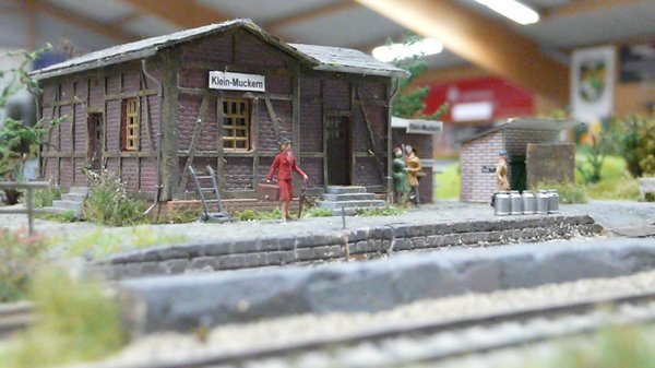 Ah, es ist 6:22 und die Reise kann endlich beginnen. Die Freigabe bis Berndorf in den Bahnhof wurde erteilt. Jonas legt noch ein paar Schippen Kohle nach, Pfiffe und Läutewerk im Bahnhof an und gefühlvoll mit regelmäßigen Dampfstößen anfahren. Nochmal ein Pfiff vor dem BÜ nach der Bahnhofseinfahrt, bevor es mit gemächlicher Fahrt in einer engen Rechtskurve zum Haltepunkt Birkenmoor geht. Dort stehen wie immer fünf volle Milchkannen, die wir mitnehmen müssen. Gefühlvoll abbremsen, anhalten, Milchkannen verladen, mal wieder keine zusätzlichen Fahrgäste und weiter geht es pünktlich im Fahrplan nach Berndorf. Regler auf und los geht’s, Jonas sorgt auf dem geraden Streckenabschnitt für genügend Dampf in der Büx. Nach einem langen, nahezu geraden Streckenverlauf und dem Passieren der sich dann anschließenden langgezogenen Rechtskurve erreichen wir den zu dem Zeitpunkt noch sehr verschlafenen Bhf Berndorf. Wir fahren pünktlich mit Geläut in Gleis 1 ein; wieder stehen 5 Milchkannen für uns bereit, die wir mitnehmen müssen und auch einige Fahrgäste steigen zu. Pünktlich um 06:49 erfolgt die Abfahrt mit einem lauten Pfiff und dem gefühlvollen Öffnen des Reglers in Richtung Klein-Muckern. Mir wurde die Fahrt bis zum Trapez vor dem Bhf erteilt, da uns in Klein Muckern die übliche Zugkreuzung mit dem Pt 14154, einem kleinen Vt., bevorsteht. Der Streckenverlauf zwischen Berndorf und Klein-Muckern ist kurvig und auch nicht immer optimal einsehbar; zudem ist der Zustand der Gleise auch nicht mehr optimal. Dann schaukeln wir mal die Fahrgäste und die Milch auf dem Streckenabschnitt bis nach Klein-Muckern durch.