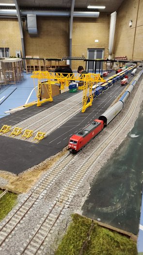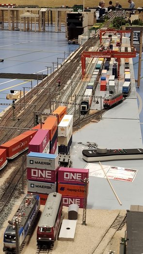 In der Modulanlage befanden sich 4 Kombiterminals, 1 Deutscher - 2 Dänische und 1 Swedisch. Im Fahrplan waren 26 Intermodal Züge zwischen die verschiedenen Kombiterminal og Fiddleyards. Und alle mit einen maximalen Zuglänge von 3,80 meter.
