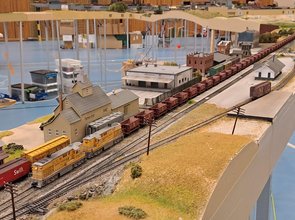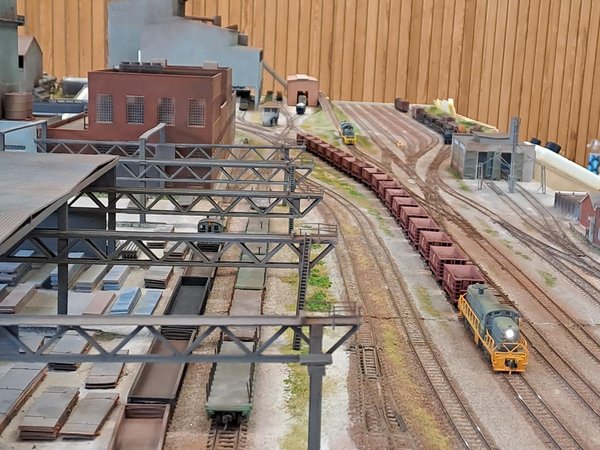 The freight traffic centered around the hub Hoquiam-Pinehill-Haslingen. Six manifest delivered and picked up cars every session in Pinehill. Most cars were headed for Hoquiam and Haslingen, but there were also cars for the local to Gray Yard and Fairview Yard. To this was added unit trains with cars to Haslingen and Loveridge. After its first appearance last year with some minor interchange traffic, it was now time to let Falconer work. This year it was used as the interchange to the industrial area and mainly served by the passing manifests.